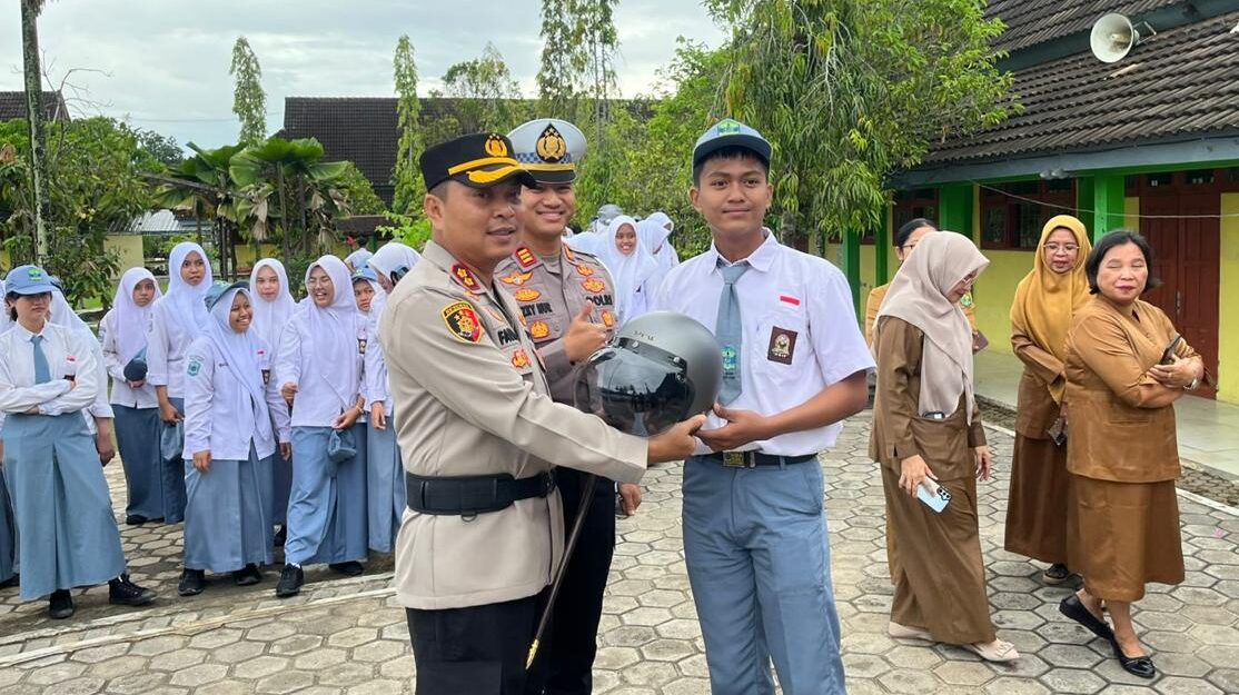 Kegiatan edukatif ini disambut antusias oleh para siswa. Selain menerima materi, mereka juga berkesempatan mendapatkan helm gratis sebagai bentuk apresiasi atas partisipasi aktif dalam kegiatan.