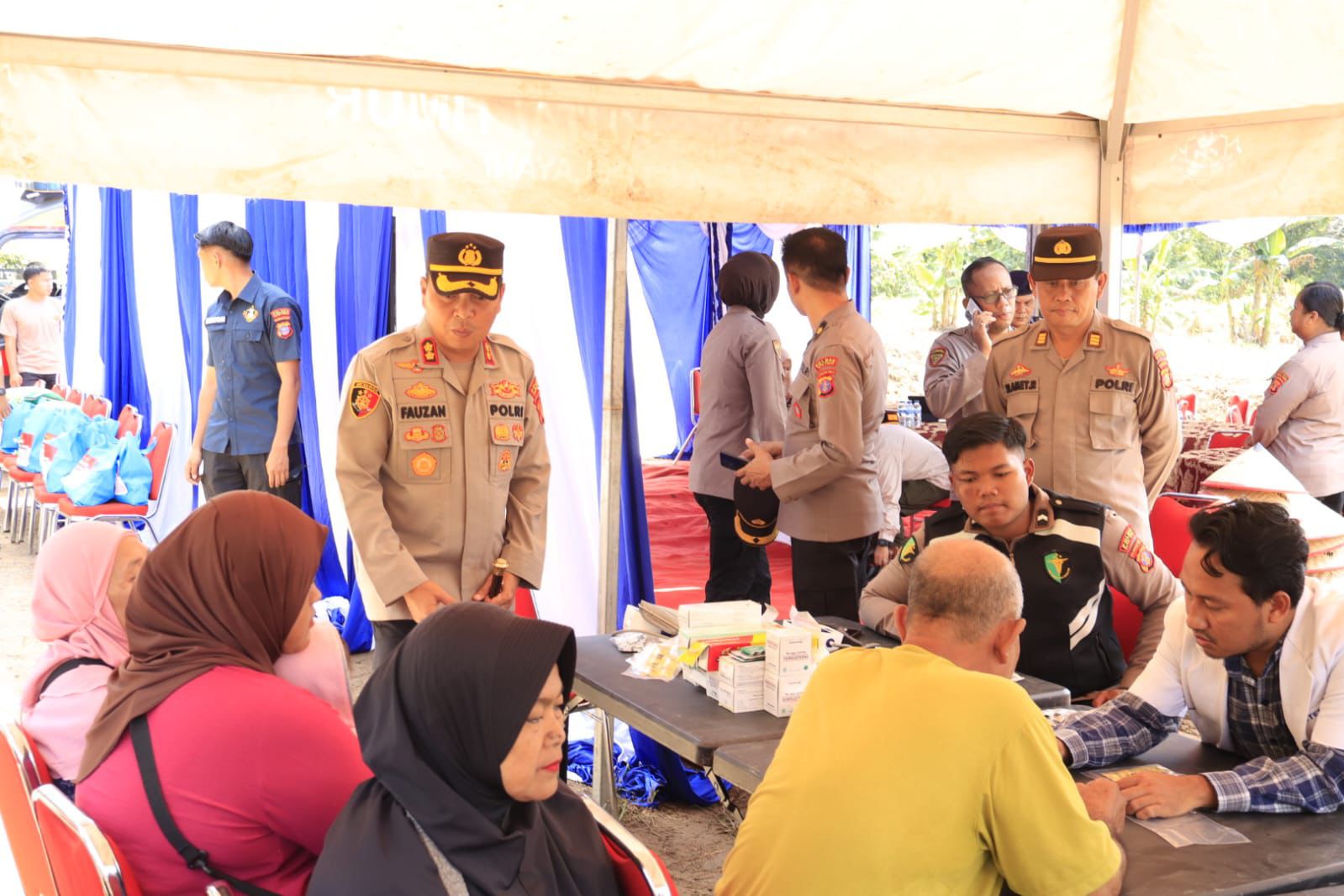 Foto : Kapolres Kutim AKBP Fauzan Arianto meninjau langsung Bakti kesehatan dan berinteraksi langsung dengan masyarakat Kabo Jaya.