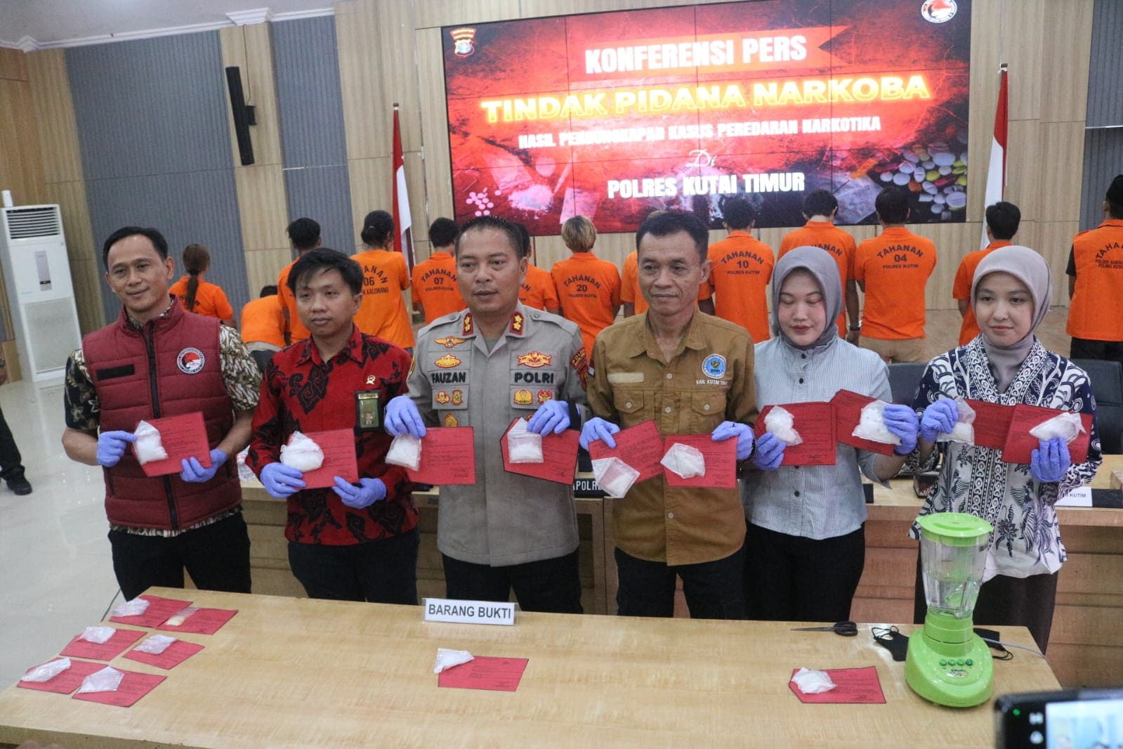 Dalam Press Release dipimpin langsung Kapolres Kutim, AKBP Fauzan Arianto, didampingi Kasat Resnarkoba AKP Erwin Susanto, perwakilan Kejari Kutim, perwakilan BNNK Kutim serta perwakilan pengadilan negeri Kutim, di Aula Auditorium Polres Kutim, Jumat (24/10/2025).
