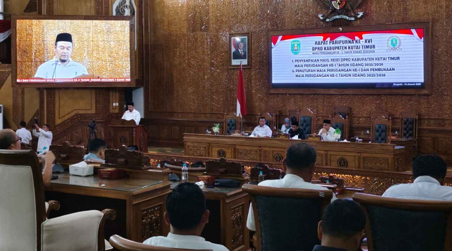Rapat Paripurna dipimpin langsung oleh Ketua DPRD Kutim, Jimmi, didampingi Wakil Ketua I, Sayid Anjas, serta dihadiri 21 anggota DPRD Kutim. Turut hadir Asisten I Setkab Kutim Noviari Noor yang mewakili Bupati Kutim, unsur Forkopimda, OPD, camat, serta tamu undangan lainnya.