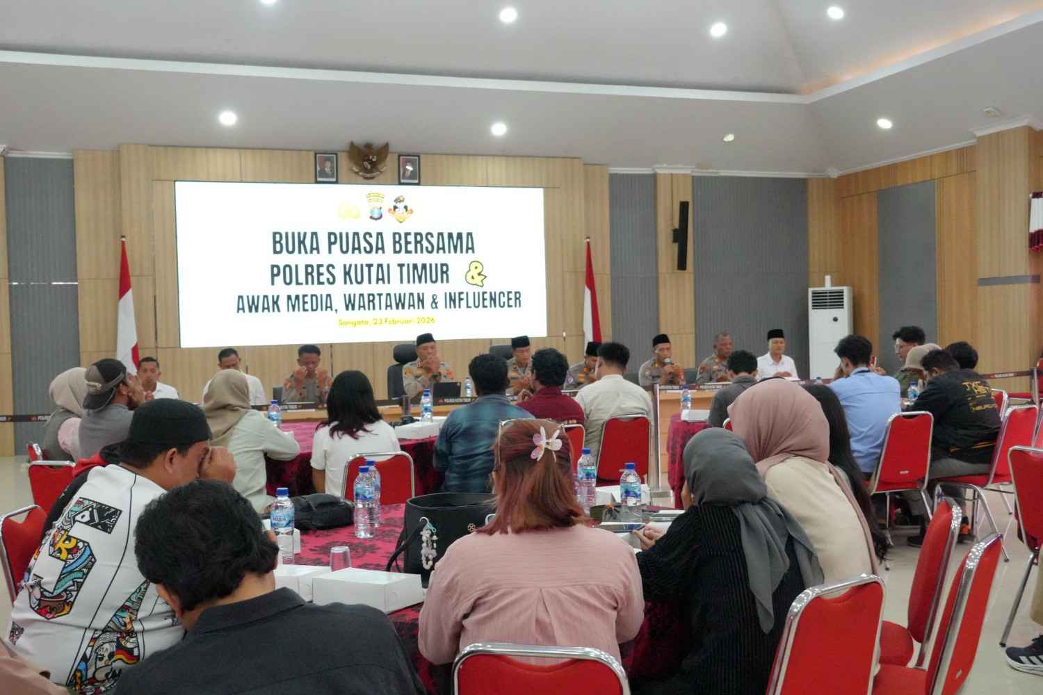 Instankaltim.com – Kutim – Polres Kutai Timur (Kutim) menggelar acara buka puasa bersama dengan puluhan awak media, wartawan, dan influencer di Sangatta, yang berlangsung di Auditorium Polres Kutim, Senin (23/02/2026).