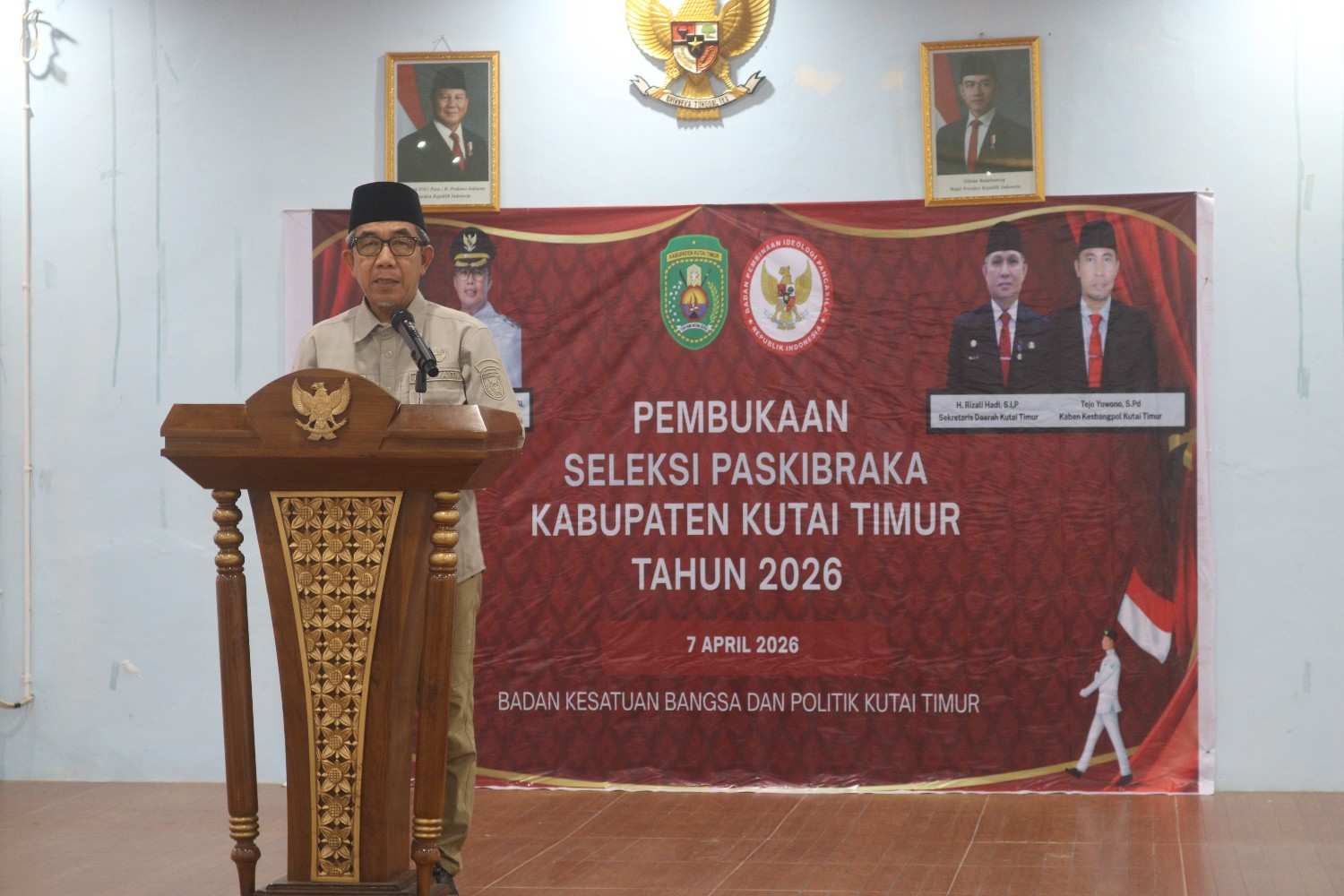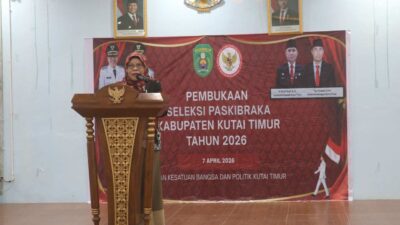 Instankaltim.com – Kutim – Badan Kesatuan Bangsa dan Politik (Kesbangpol) Kabupaten Kutai Timur (Kutim) menggelar kegiatan Pembukaan Seleksi Pasukan Pengibar Bendera Pusaka (Paskibraka) Tahun 2026 di Aula Hotel Kutai Permai, Sangatta Utara, Kutim, Selasa (07/04/2026) malam.